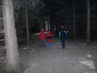 It also seems to involve an amazing knack for finding and jumping in every single mud puddle on the planet. We did not pick the best day for a hike in the woods since the ground was very mucky, mushy, slippery and gross. Which means we ended up with lots of mud covered shoes, pants, coats and socks.